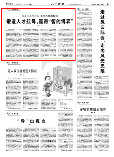 “這個國家改革開放之后,每分每秒都在發(fā)生變化,包括他們的軍隊?!币幻L期關(guān)注中國軍隊建設(shè)的外媒老記者感慨:“與明顯的‘換裝’相比,這支軍隊的‘換人’是隱性的,但這卻是他們不斷強大的最關(guān)鍵原因?!睙o獨有偶,在國內(nèi)一家軍事網(wǎng)站最近組織的“改革開放中的人民軍隊”調(diào)研中,72%的網(wǎng)民認(rèn)為“軍人知識結(jié)構(gòu)不斷升級”,是人民軍隊40年來取得巨大成就的主因。請關(guān)注今日《解放軍報》的報道——