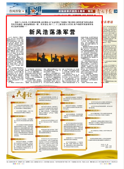 黨的十八大召開后不久,習(xí)主席親自主持制定了中央八項規(guī)定、軍委十項規(guī)定,外出調(diào)研輕車簡從,視察部隊自己端盤打菜,與戰(zhàn)士們一起巡邏執(zhí)勤、站崗放哨,身體力行地轉(zhuǎn)作風(fēng)、正風(fēng)氣。領(lǐng)袖的一舉一動,是最有力的動員令,也是最響亮的沖鋒號,為全軍官兵樹起了榜樣。