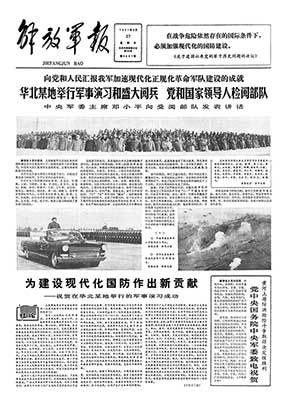 1981年8月27日-9月25日,全軍高級干部集訓(xùn),重點研究戰(zhàn)爭初期方面軍防御戰(zhàn)役的組織與實施。其間,北京軍區(qū)在華北地區(qū)組織了方面軍防御戰(zhàn)役演習(xí)。鄧小平在演習(xí)結(jié)束后舉行的閱兵式上講話指出,必須把我軍建設(shè)成為一支強(qiáng)大的現(xiàn)代化、正規(guī)化的革命軍隊。