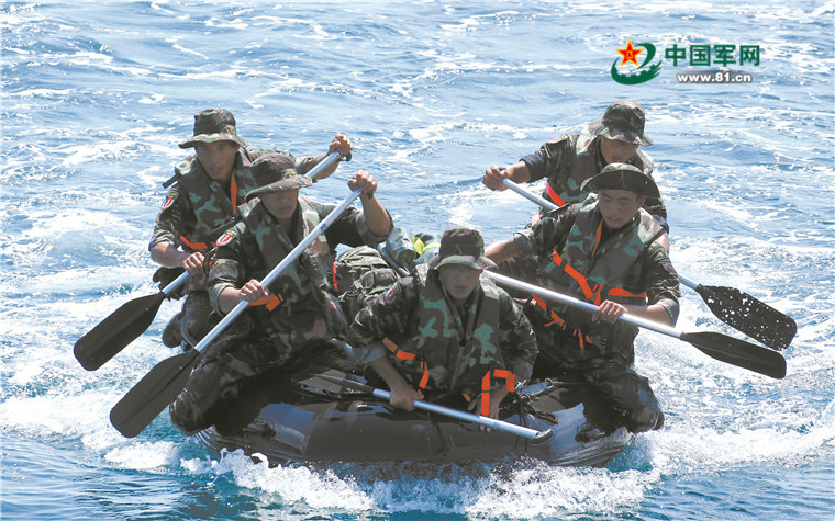 特戰(zhàn)隊員進行海上操舟滲透課目訓(xùn)練。 解放軍報記者 李靖攝