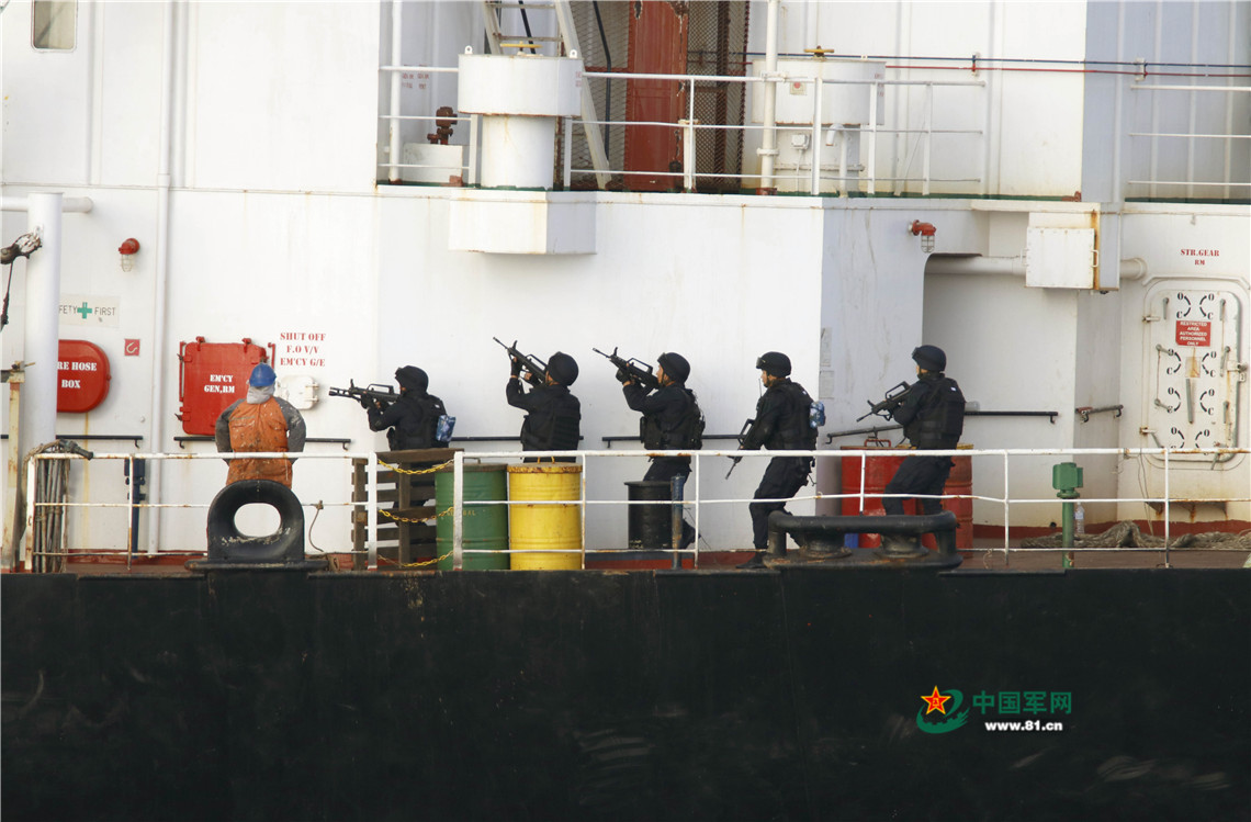 海軍特戰(zhàn)隊(duì)員快速登入貨船展開(kāi)營(yíng)救活動(dòng)。牛云海 攝
