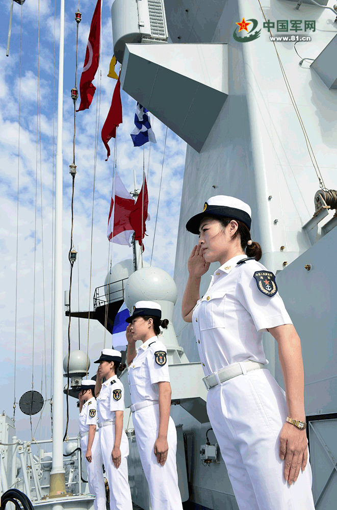 蕪湖艦女兵在甲板列隊(duì)接受檢閱。來(lái)永雷攝