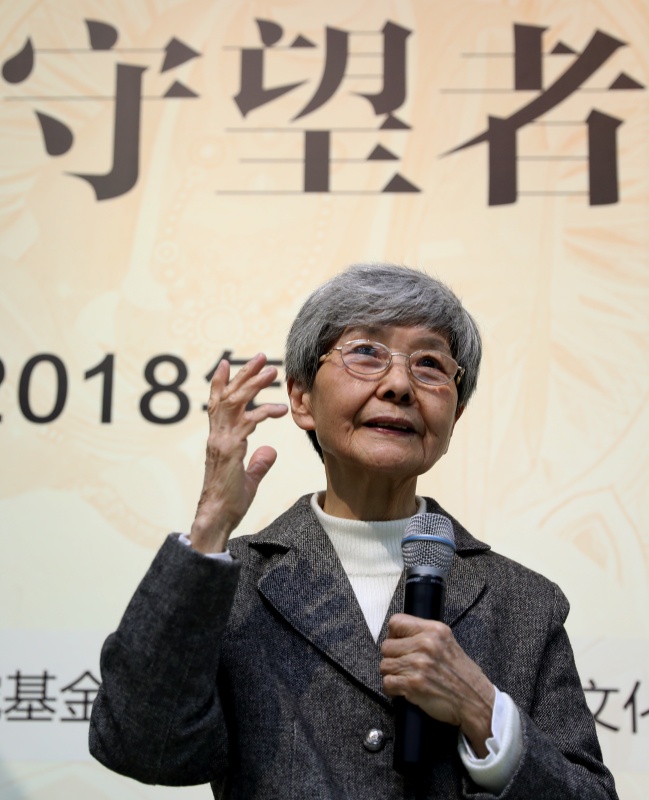 2018年3月30日,敦煌研究院名譽(yù)院長(zhǎng)樊錦詩在“敦煌文化守望者”全球志愿者派遣計(jì)劃首期出征儀式上致辭。新華社記者 劉穎 攝