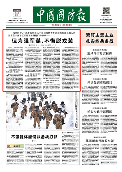 ■中國國防報記者 徐 雯 路波波 特約通訊員 周 賀