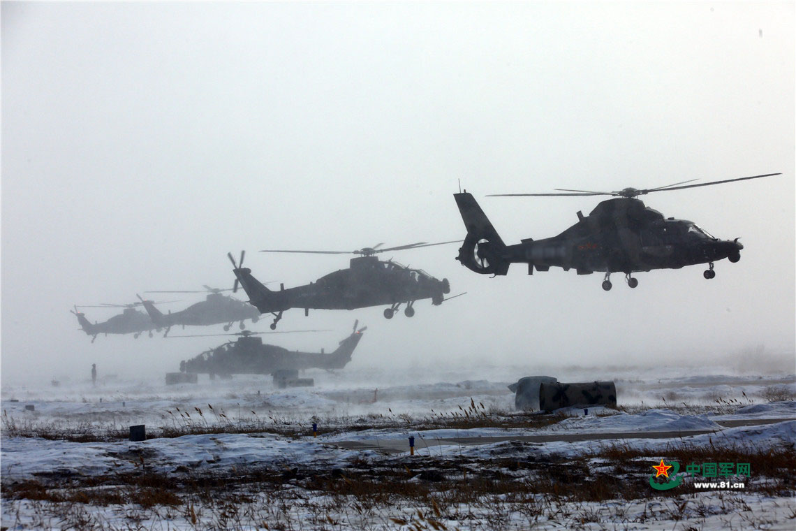 ?嚴(yán)寒條件下直升機(jī)群展開協(xié)同訓(xùn)練。吳世科 攝