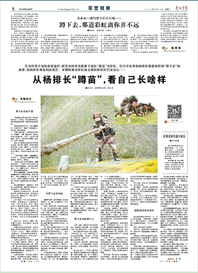 長話短說,對照楊排長的“蹲苗”經(jīng)歷,我們期待每一名排長都能夠認真思量:苗該怎么蹲?基層怎么干?將來怎么辦?同時,各級領(lǐng)導(dǎo)也要及時靠上去多幫帶,給他們搭舞臺,讓他們有平臺,從而凝聚起強軍興軍的不竭力量。