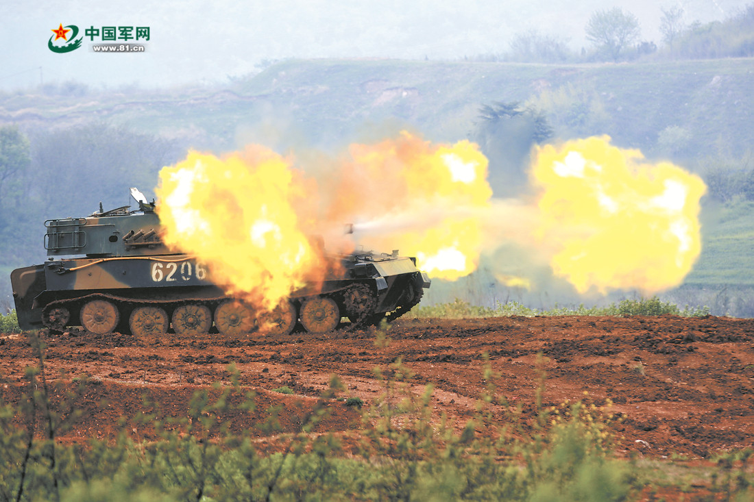 4月10日,第72集團軍某旅組織炮兵分隊開展實彈射擊訓練。(張文舉/攝)