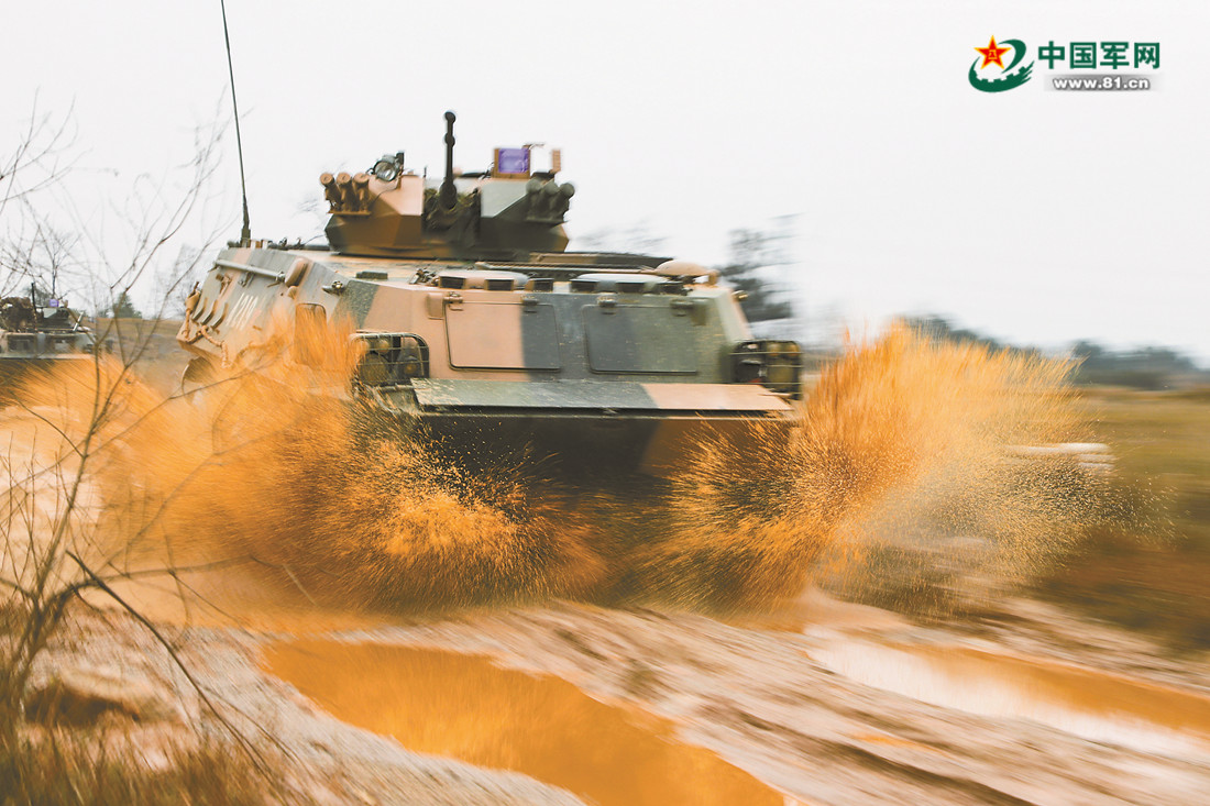 圖為步戰(zhàn)車快速通過復(fù)雜路段。黃遠(yuǎn)利攝