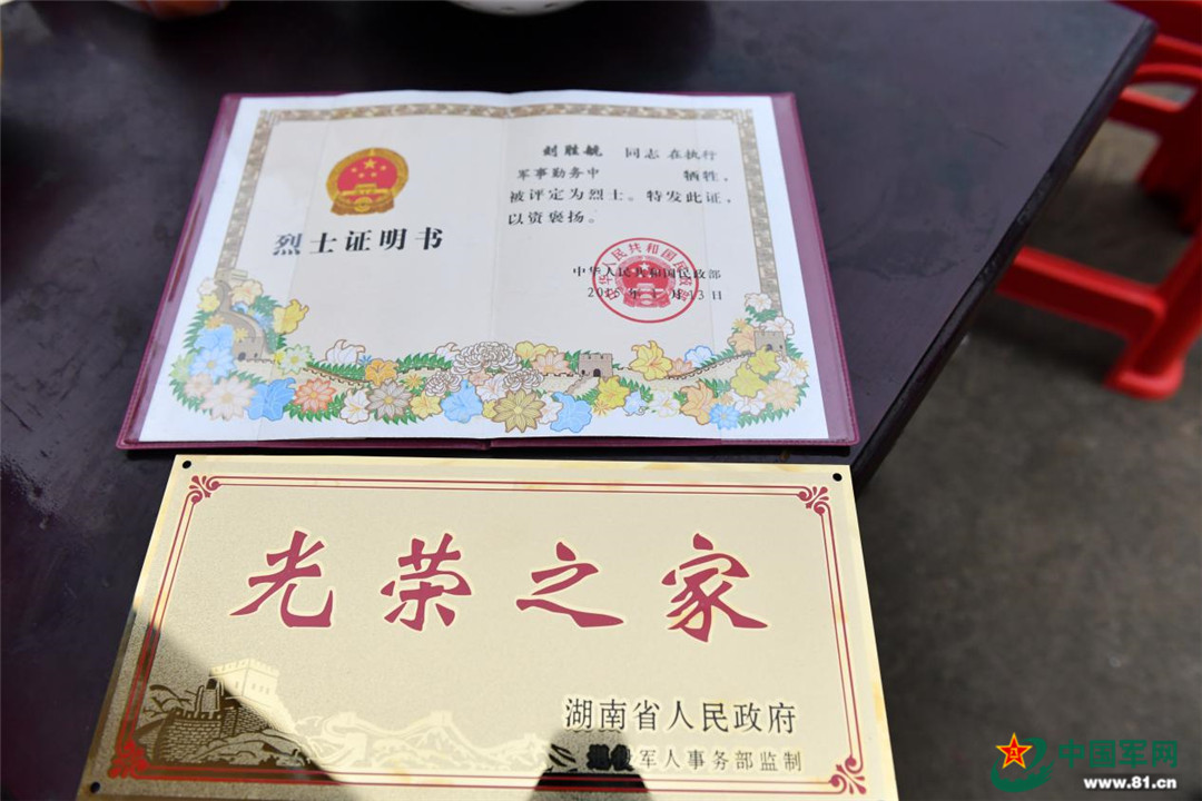 “國(guó)家感謝您啊!養(yǎng)了個(gè)兒子給國(guó)家做貢獻(xiàn)了。我們永遠(yuǎn)不會(huì)忘記英雄,也不會(huì)忘記英雄的父母。有什么困難,您跟我們說(shuō)!”漣源市石馬山鎮(zhèn)雙力村謝貴生老人家里真情涌動(dòng)。謝貴生的小兒子劉勝航18歲參軍,19歲壯烈犧牲,時(shí)隔三十八年,謝貴生迎來(lái)了這塊屬于兒子的光榮牌。抱著婁底軍分區(qū)領(lǐng)導(dǎo)親手送來(lái)的光榮牌匾,老人就像抱著孩子一樣愛憐地?fù)崦怀陕暋?/p>
