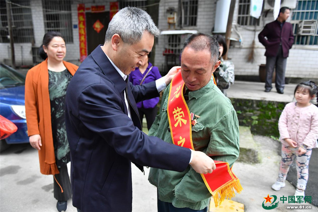 老兵譚周武四十年前入伍,榮立二等戰(zhàn)功。為了迎接自己的光榮牌,譚周武特地穿上了40多前那身從戰(zhàn)場(chǎng)上打得破破爛爛、洗得發(fā)白的老軍裝,但戰(zhàn)士的颯爽英姿依然不減當(dāng)年?!案改高€健在嗎?”“兒子從事什么工作?”“現(xiàn)在身體還健康嗎?”“還有什么需要黨委政府解決的困難?”面對(duì)市長(zhǎng)劉杰的關(guān)心詢問(wèn),譚周武心中倍感溫暖,“我沒什么困難,只是懷念戰(zhàn)場(chǎng)上犧牲的戰(zhàn)友,希望他們的親屬能得到更好的優(yōu)待和關(guān)心?!?/p>