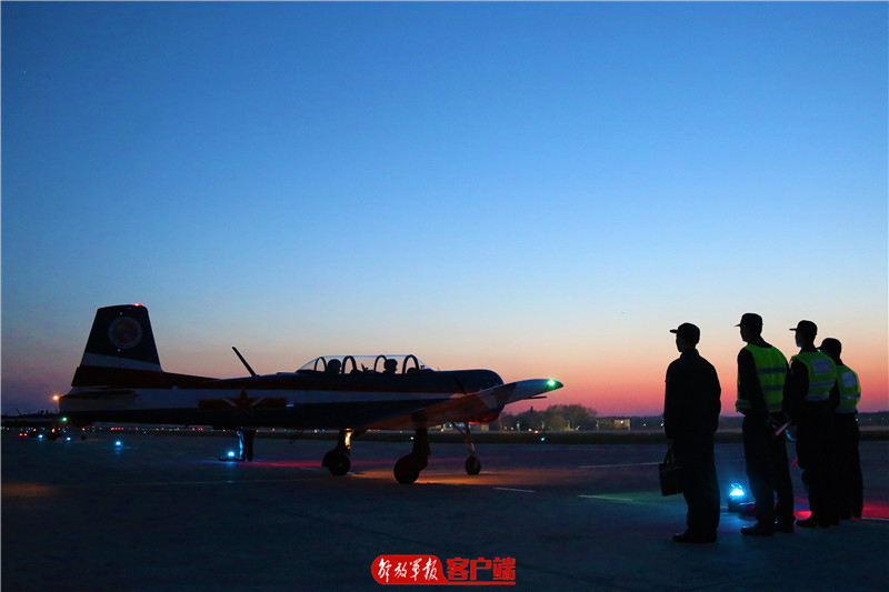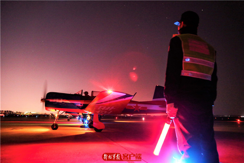 置身塔臺,記者看見飛行指揮員、飛行管制員、信號員、計時員、氣象預(yù)報員各司其職,走近停機(jī)坪,各類保障車輛穿梭其間,機(jī)務(wù)官兵緊張有序地展開保障工作。雖已臨近凌晨,機(jī)場氣溫比白天下降近20攝氏度,但依舊阻擋不了官兵們的訓(xùn)練熱情。隨著最后一架飛機(jī)的平穩(wěn)降落,該團(tuán)圓滿完成本場次夜航單飛訓(xùn)練任務(wù),參訓(xùn)學(xué)員先后完成了大坡度盤旋、低速飛行、最小速度飛行、區(qū)域定向等實戰(zhàn)化課目訓(xùn)練,成績?nèi)亢细瘛?/p>