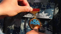 誓言鏗鏘,豪情激蕩?!澳7犊战当B”指導(dǎo)員吳健、副連長敖日格勒分別為新戰(zhàn)友佩戴英雄傳人胸章,勉勵他們要不忘初心,銘記誓言,珍惜榮譽,傳承好英雄精神。