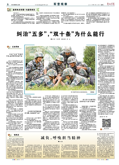 戰(zhàn)士留隊熱情高漲,上級工作組數(shù)量減少,下發(fā)文電數(shù)量下降……聽聞該集團軍的減負成果,許多友鄰單位也在反思:各單位措施層出不窮,“五多”卻久治不絕,“雙十條”為什么能行?本期《軍營觀察》,請看“雙十條”的誕生記。