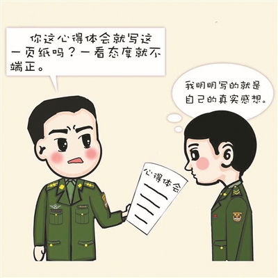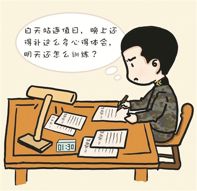 撰寫心得體會(huì),本是為提高教育效果所采取的措施,意在加深官兵對(duì)教育內(nèi)容的理解,但一些單位卻在具體實(shí)施中走了樣。請(qǐng)關(guān)注今日《解放軍報(bào)》的詳細(xì)報(bào)道——
