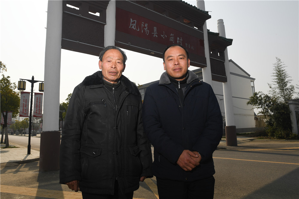 嚴(yán)宏昌(左)和兒子嚴(yán)余山在小崗村合影。