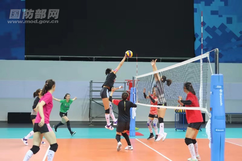 “八一女排”刻苦訓練備戰(zhàn)軍運會。康鵬 攝