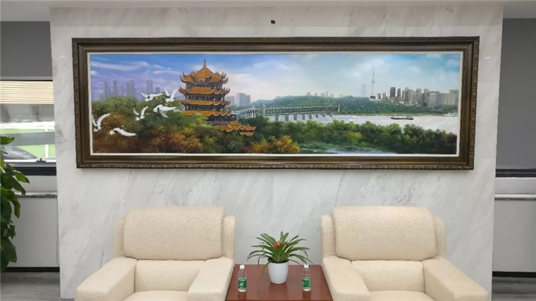 進(jìn)入主媒體中心貴賓廳,首先映入眼簾的是向斌創(chuàng)作的油畫《黃鶴歸來》。該畫作選取武漢最為著名的景點(diǎn)“龜蛇鎖大江”、“一橋飛架南北”的城市主城景觀和黃鶴樓景觀為呈現(xiàn)對象,體現(xiàn)了武漢的精神風(fēng)骨、歷史人文特色。