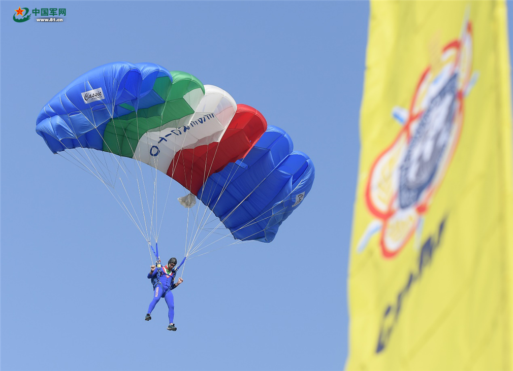 圖為外國(guó)跳傘運(yùn)動(dòng)員在跳傘中。新華社記者李賀 攝