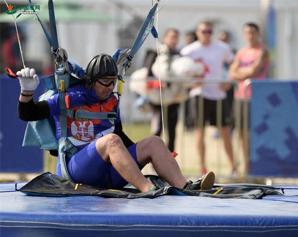 圖為外國跳傘隊員落地瞬間。新華社記者李賀 攝