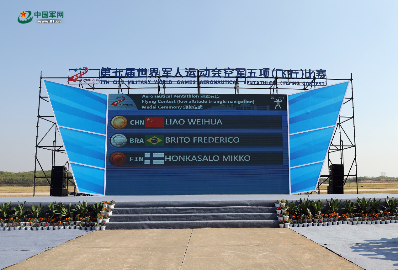 12時(shí)59分52秒,隨著最后一位選手飛機(jī)的安全著陸,空軍五項(xiàng)飛行比賽圓滿結(jié)束,前三名分別是來(lái)自中國(guó)隊(duì)廖偉華、巴西隊(duì)BRITO FREDERICO、芬蘭隊(duì)HONKASALO MIKKO,中國(guó)代表團(tuán)斬獲武漢軍運(yùn)會(huì)第二金!