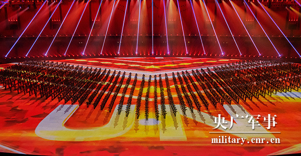“在許多開(kāi)幕式上,演員都是從入席的一二三四口上場(chǎng),而此次我們實(shí)現(xiàn)了千軍萬(wàn)馬場(chǎng)景的瞬息變化以及場(chǎng)景的轉(zhuǎn)換,這一切都是由我們的部隊(duì)官兵,通過(guò)實(shí)際的手工操作來(lái)完成的?!币两忉尩溃骸熬褪俏覀兺ㄟ^(guò)舞臺(tái)的上下空間,區(qū)域的分割,打造踏板、出路口,使演員可以瞬息萬(wàn)變。”
