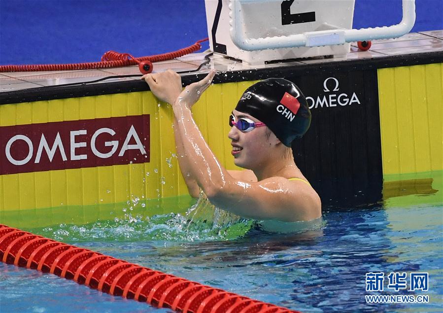 10月20日,中國(guó)選手張雨霏在比賽后慶祝。當(dāng)日,在武漢進(jìn)行的第七屆世界軍人運(yùn)動(dòng)會(huì)女子100米蝶泳決賽中,中國(guó)選手張雨霏以58秒59的成績(jī)獲得冠軍。新華社記者 程敏 攝