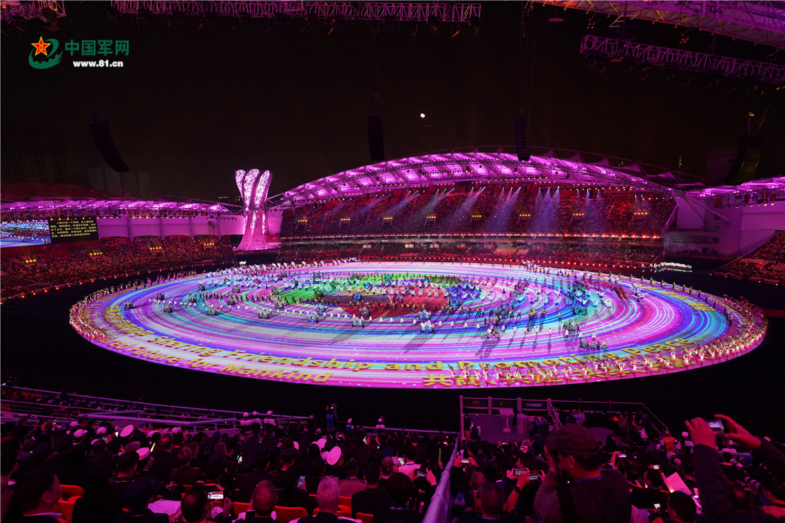 10月18日,第七屆世界軍人運(yùn)動會開幕式在武漢體育中心舉行。這是開幕式現(xiàn)場。柳軍攝
