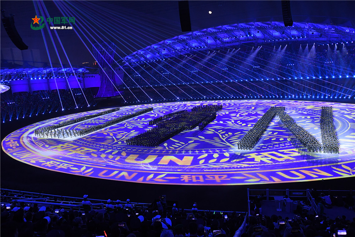 10月18日,第七屆世界軍人運(yùn)動(dòng)會(huì)開(kāi)幕式在武漢體育中心舉行。這是開(kāi)幕式現(xiàn)場(chǎng)。柳軍攝