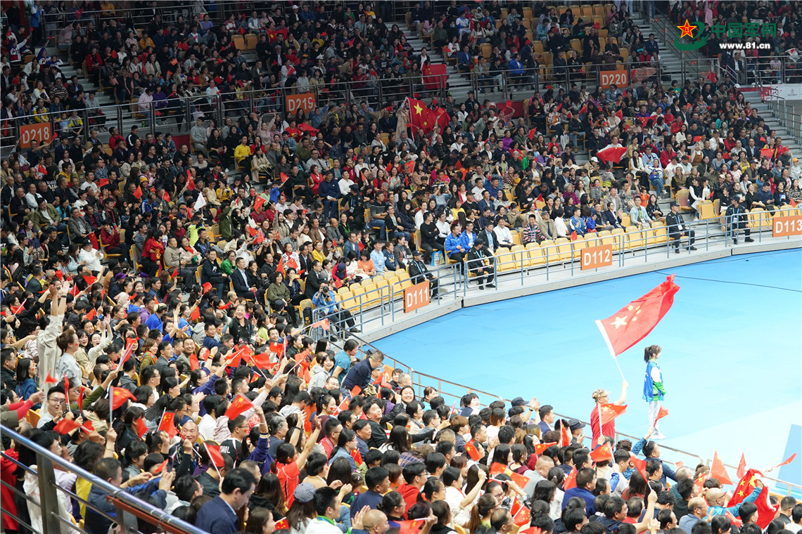 10月22日晚,在武漢進(jìn)行的第七屆世界軍人運(yùn)動(dòng)會(huì)女子排球決賽中,中國(guó)隊(duì)以1比3不敵巴西隊(duì),獲得亞軍。這是觀眾為運(yùn)動(dòng)員加油助威。中國(guó)軍網(wǎng)記者柳軍攝
