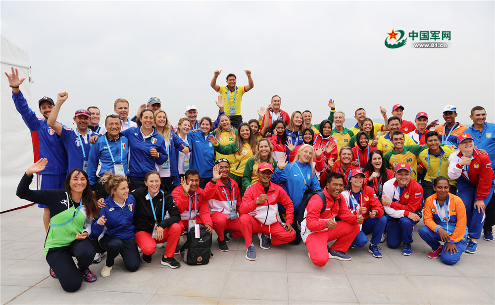 頒獎(jiǎng)外籍軍官與獲獎(jiǎng)隊(duì)員愉快合影。朱金平/攝影
