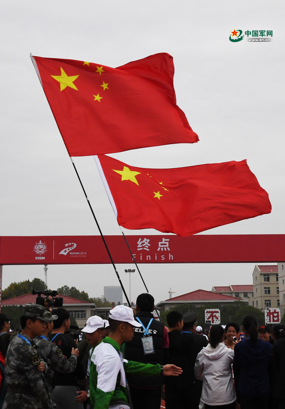 五星紅旗在軍事五項(xiàng)賽場(chǎng)上飄揚(yáng)。