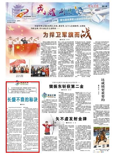 在武漢軍運會軍事五項比賽現(xiàn)場,我見到了當年的世界冠軍王戀英、楊春義等幾員老將。上世紀八九十年代,我曾多次采訪他們,知道這項運動的超難度和超艱辛,更知道軍事五項隊那頗具軍人血性的拼搏精神和戰(zhàn)斗作風。如今,新一代中國軍人又一次囊括男女團體和男女個人全能4枚金牌,令人感奮。