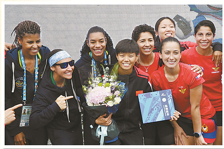 中國軍事五項隊隊員在慶祝勝利。解放軍報記者 王傳順攝