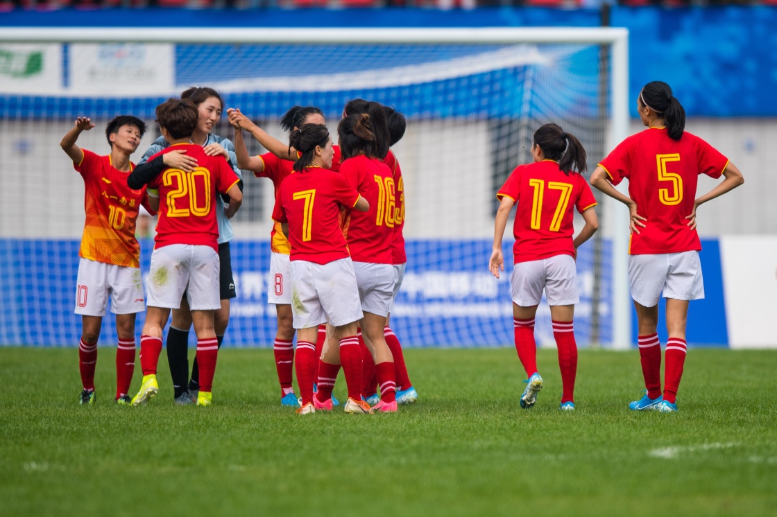中國隊(duì)球員賽后慶祝勝利。新華社記者劉金海 攝