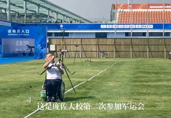 坐著輪椅參加了射箭項(xiàng)目殘健混合團(tuán)體