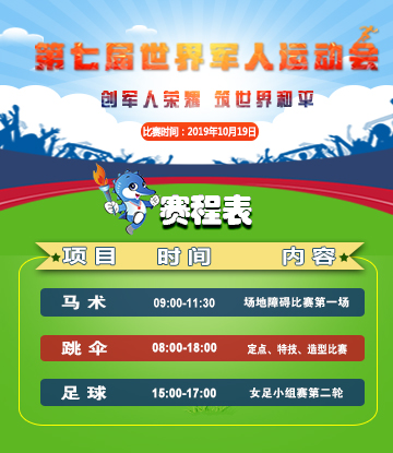 10月19日第七屆世界軍人運動會賽程安排2019-10-14 14:53