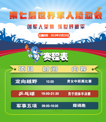 10月20日第七屆世界軍人運動會賽程安排2019-10-14 14:53