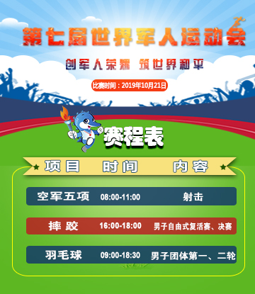 10月21日第七屆世界軍人運動會賽程安排2019-10-21 00:19