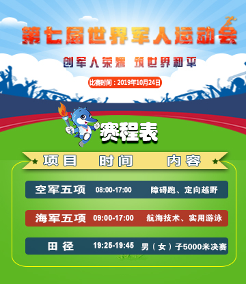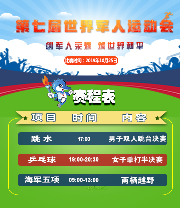 10月25日第七屆世界軍人運動會賽程安排2019-10-22 11:12
