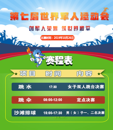 10月26日第七屆世界軍人運動會賽程安排2019-10-24 08:17