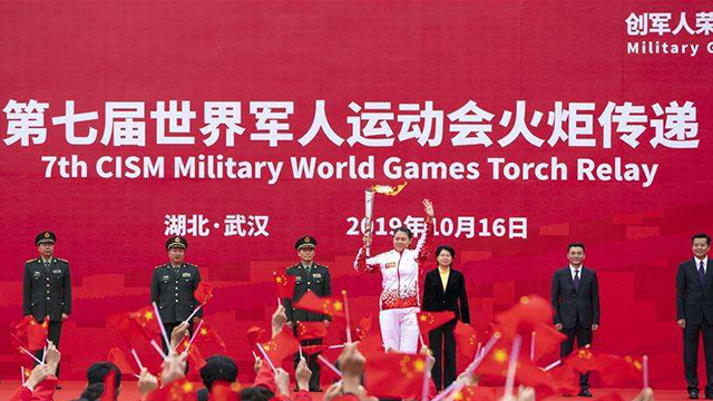 軍運會軍運會火炬?zhèn)鬟f:創(chuàng)軍人榮耀 筑世界和平2019-10-16 17:54