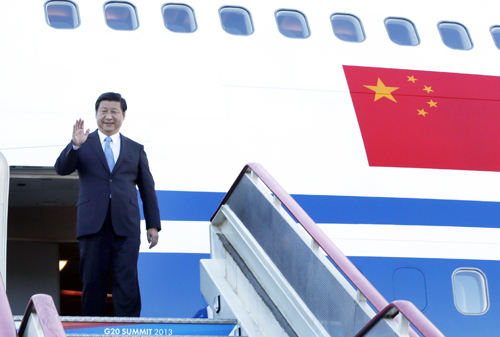 2013年9月4日,習(xí)近平抵達(dá)俄羅斯圣彼得堡,出席5日至6日舉行的二十國集團(tuán)領(lǐng)導(dǎo)人第八次峰會(huì)。