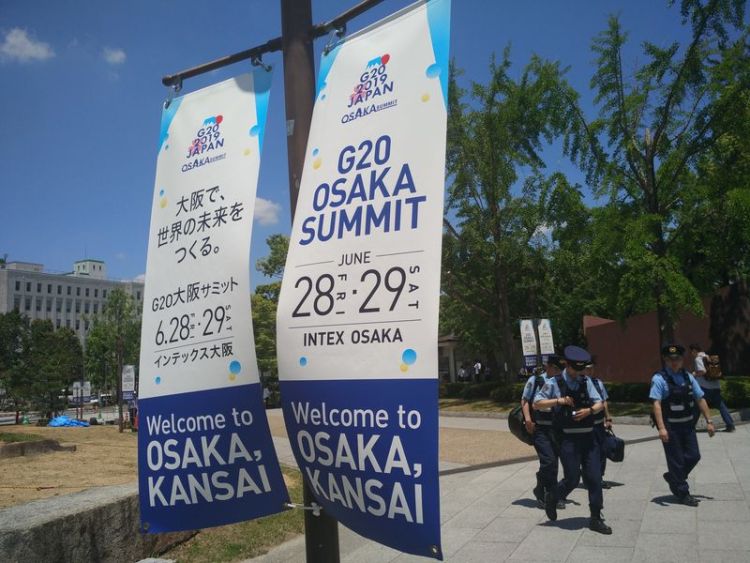 入夏的大阪,驕陽燦爛,綠意蔥籠,海風(fēng)輕拂路人。隨著峰會(huì)臨近,在大阪主要景區(qū)、酒店、商廈及干道,均可以看到帶有二十國集團(tuán)領(lǐng)導(dǎo)人大阪峰會(huì)元素的標(biāo)牌、海報(bào)和條幅。