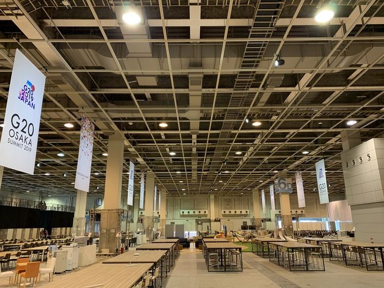 大阪國際會展中心內(nèi)景。二十國集團領(lǐng)導(dǎo)人大阪峰會的新聞中心設(shè)在這里。新華社記者黃敬文攝