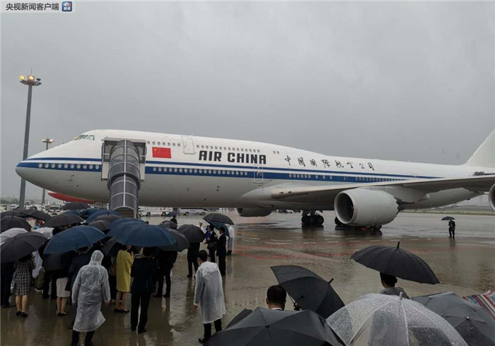 雨中迎接專機并不常見(央視記者楊立峰拍攝)。