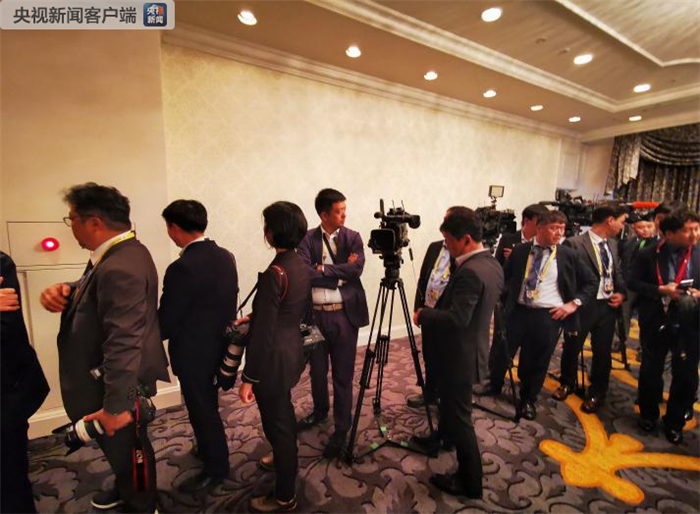 記者正在等待這一場會見(央視記者荊偉拍攝)。