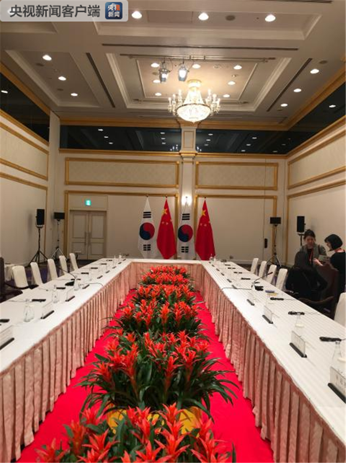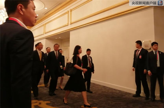 文在寅總統(tǒng)步入會見現(xiàn)場(央視記者許永松拍攝)。
