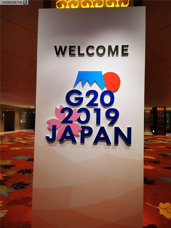 G20峰會標(biāo)志牌。標(biāo)志由象征著日本的富士山、太陽和櫻花等元素構(gòu)成。富士山的“山頂”和“朝日”象征著增長和繁榮。山腳下,盛開的櫻花代表著春天,寄托了人們對全球經(jīng)濟(jì)繁榮增長的美好期待(央視記者荊偉拍攝)。