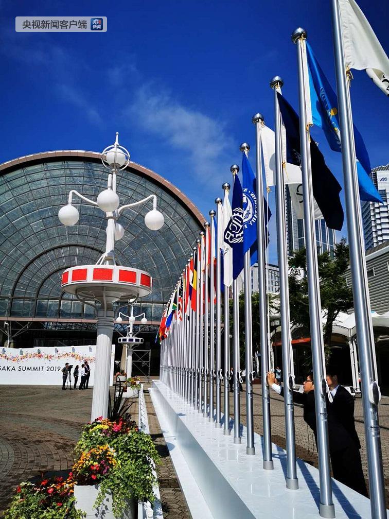 △大阪國(guó)際展覽中心的各方旗幟。(央視記者荊偉拍攝)
