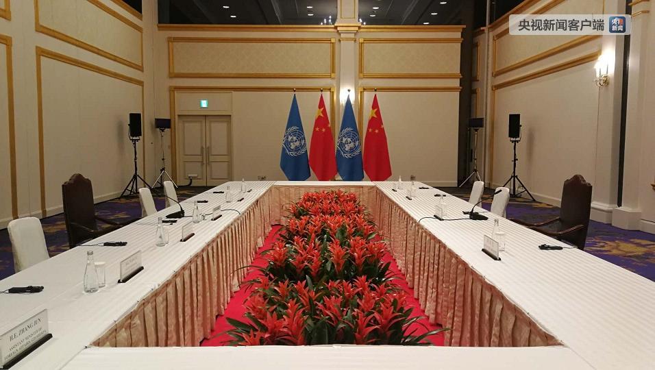 △習(xí)近平與古特雷斯會見的會場。(央視記者黃京輝拍攝)